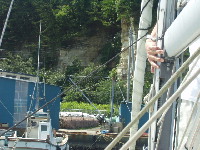 さて、まずは船内の水(シャワー、食器洗い等に利用します)を交換するため、別の港に立ち寄りました。