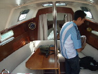 30分程度で係留地に到着。さっそくヨットに乗り込みました。