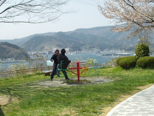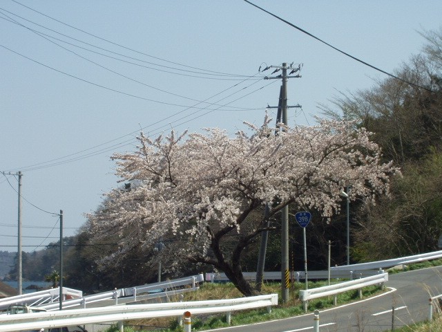 リアスブルーラインの途中で、休憩。いいですね、まったりツーリンク。桜もきれいに咲いていました。