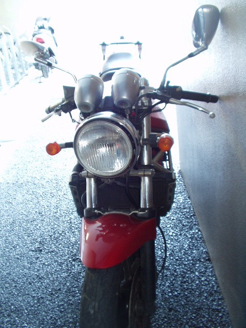 とりあえず、走行可能に。みんなが待っている、コンビニにやっと到着。センタースタンド、かけた事ありません。