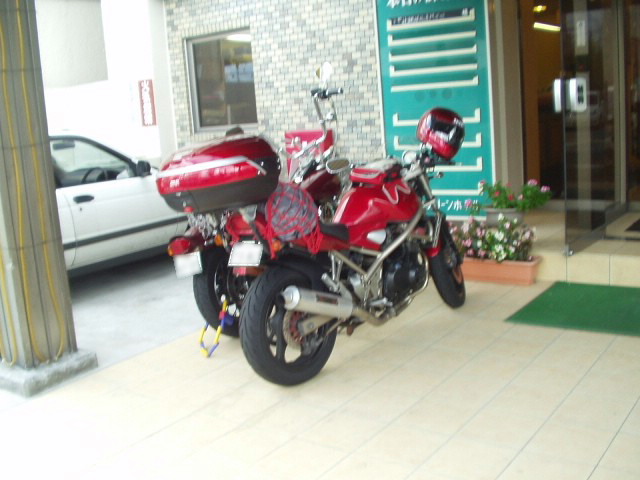 宿までの道は、ワインディングで気持ちよく走れました。フォークオイルの漏れ以外は(爆)。